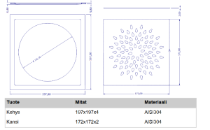 Design-lattiakaivonkannen kansi on valmistettu 2mm paksusta ruostumattamasta teräksestä (AISI304)