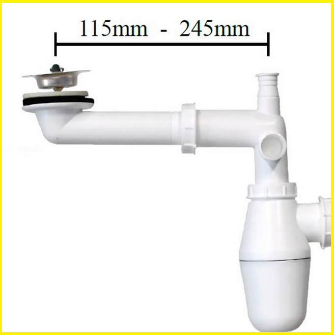Sivuliukujatkossa on kaksi paikkaa 25mm ylivuotoputkelle, sekä 19mm yhde poistoputkelle.