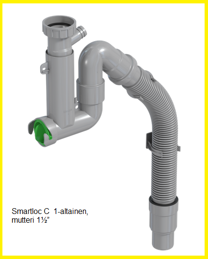 Smartloc on optimaalinen vesilukko mihin tahansa keittiöön – se on täynnä älykkäitä teknisiä ominaisuuksia, ja se on valmistettu osittain kierrätetystä muovista. Siinä on fiksuja parannuksia, kuten taipuisat soikeat putket jäämien syntymisen estämiseksi. Lisäksi Smartloc on äärimmäisen helppo puhdistaa. Kierrätysmuovi vähentää ympäristövaikutusta. Se on osa matkaamme kohti muutosta, jossa kaikki tuotteidemme ensiömuovi korvataan kierrätysmateriaalilla.