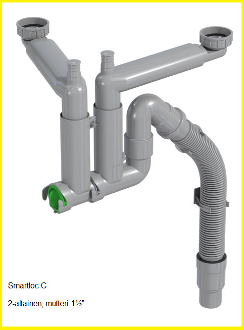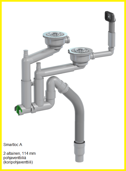 Smartloc on optimaalinen vesilukko mihin tahansa keittiöön – se on täynnä älykkäitä teknisiä ominaisuuksia, ja se on valmistettu osittain kierrätetystä muovista. Siinä on fiksuja parannuksia, kuten taipuisat soikeat putket jäämien syntymisen estämiseksi. Lisäksi Smartloc on äärimmäisen helppo puhdistaa. Kierrätysmuovi vähentää ympäristövaikutusta. Se on osa matkaamme kohti muutosta, jossa kaikki tuotteidemme ensiömuovi korvataan kierrätysmateriaalilla.
